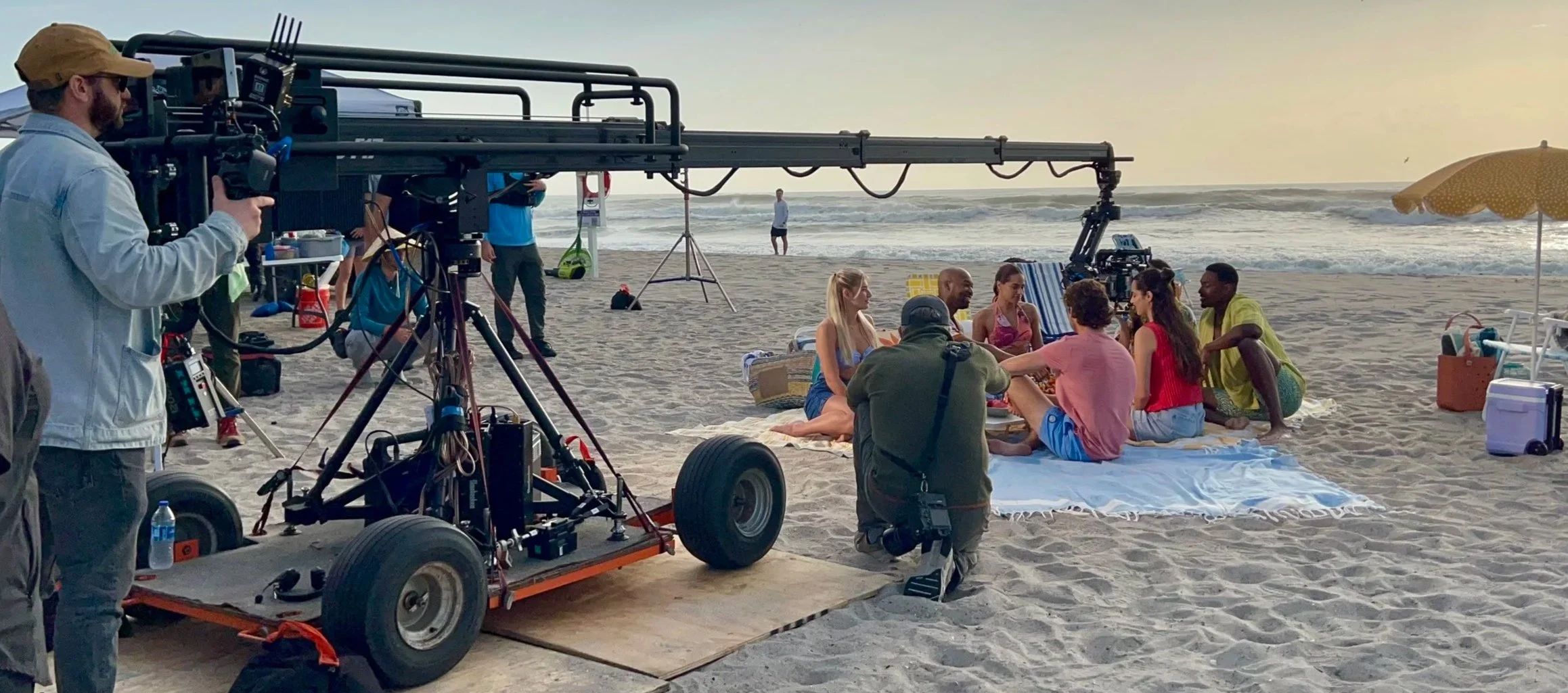Technoscope F17 / Flight Head TV / adds. Dolly base for wider base on the beach / with operator Eli Franks